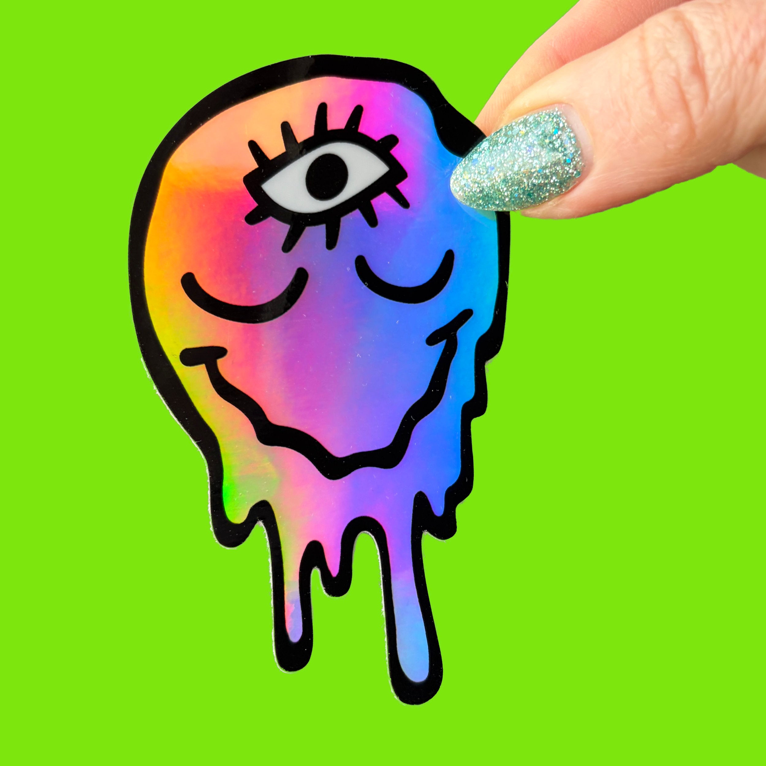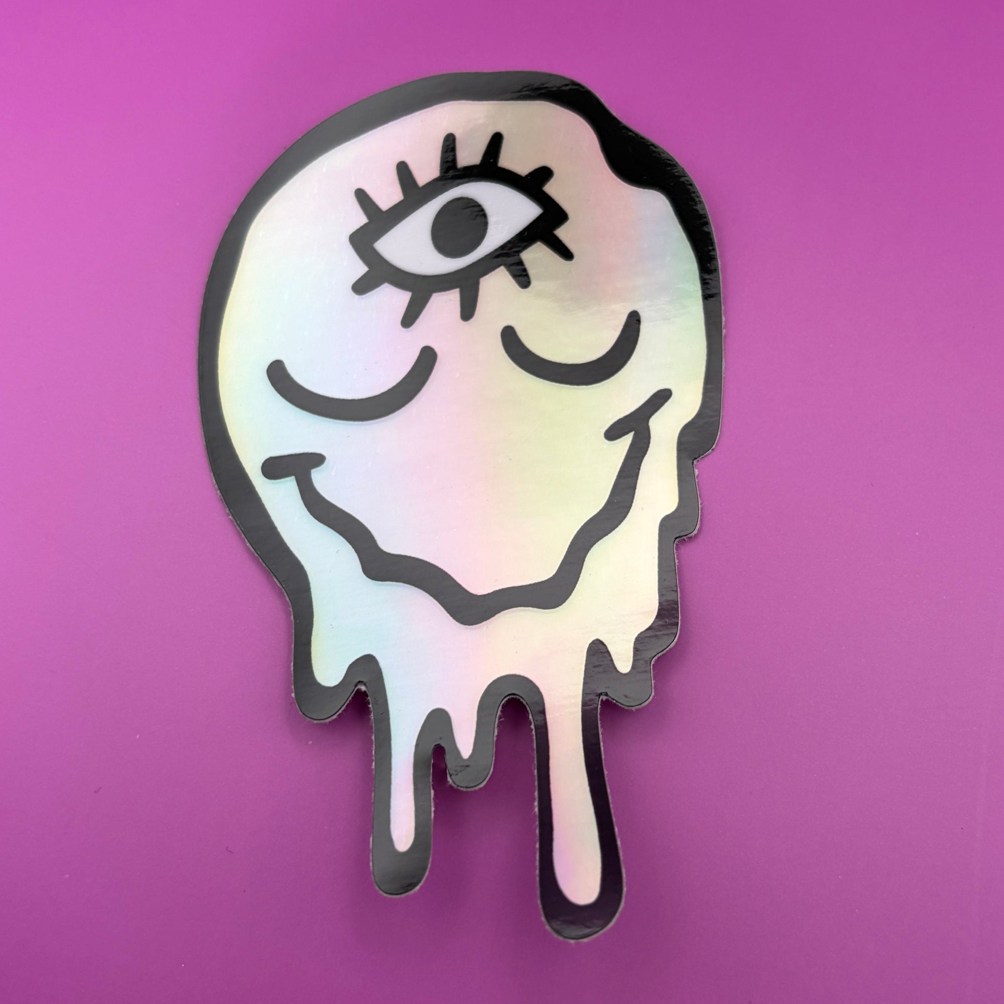 • 3" holographic rainbow drippy melty face with third eye